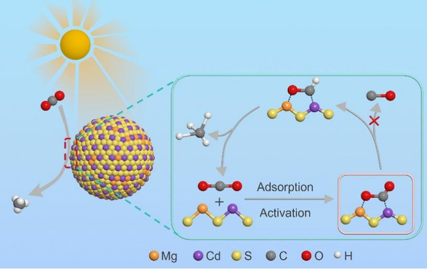 图1Mg2+掺杂CdS量子点光催化二氧化碳甲烷化示意图